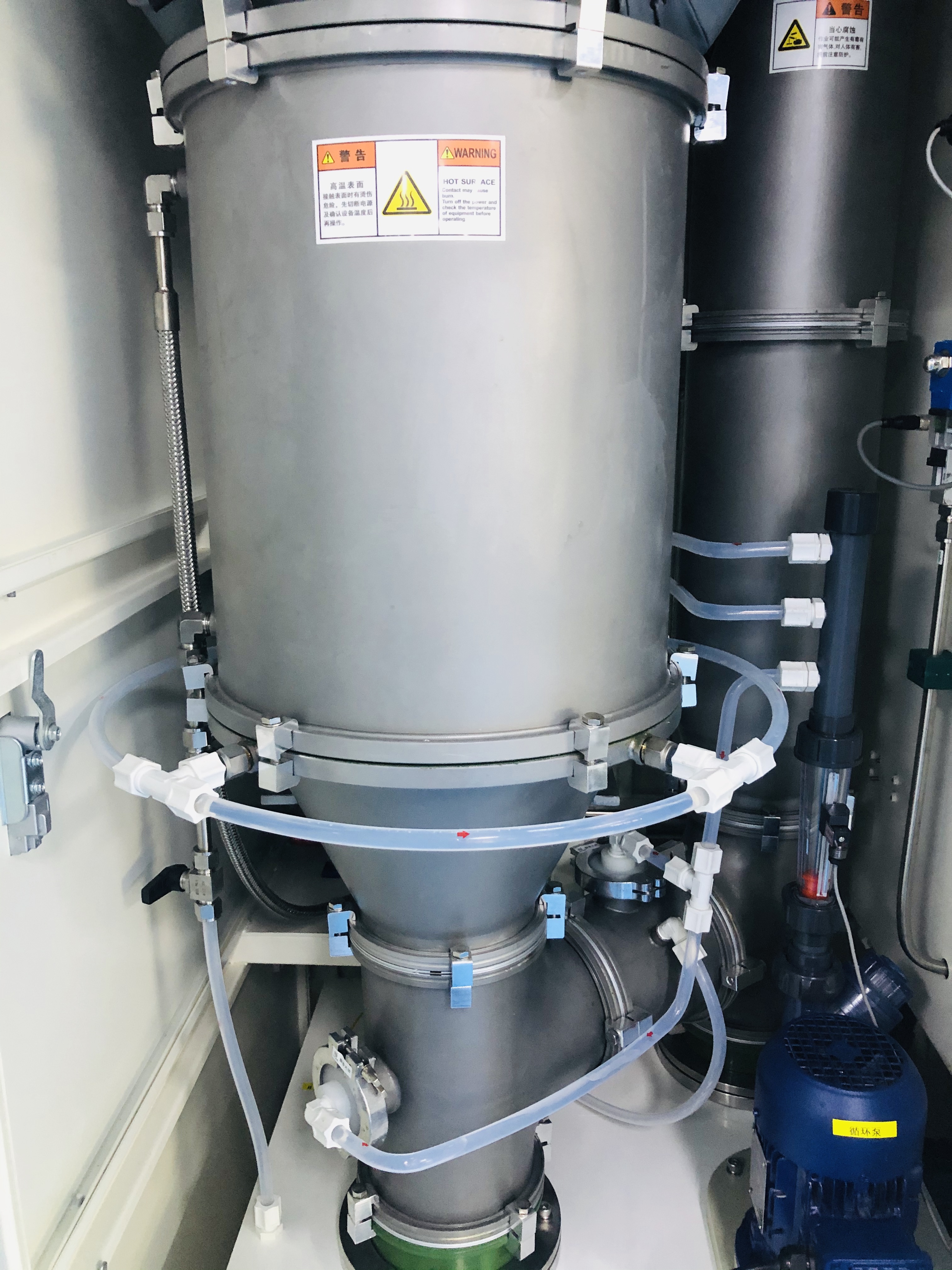 通过电能加热,对进入的制程废气在反应腔室内进行高温分解,反应生成H2O、CO2等无害物质,再由水洗系统对其处理,水气分离器将水汽和气体分离,溶于水的物质作为废水排出,处理达标的气体定向排放至厂务中央系统。所处理的尾气,包含了大部分半导体、TFT、SOLAR 工厂所使用的特种气体。